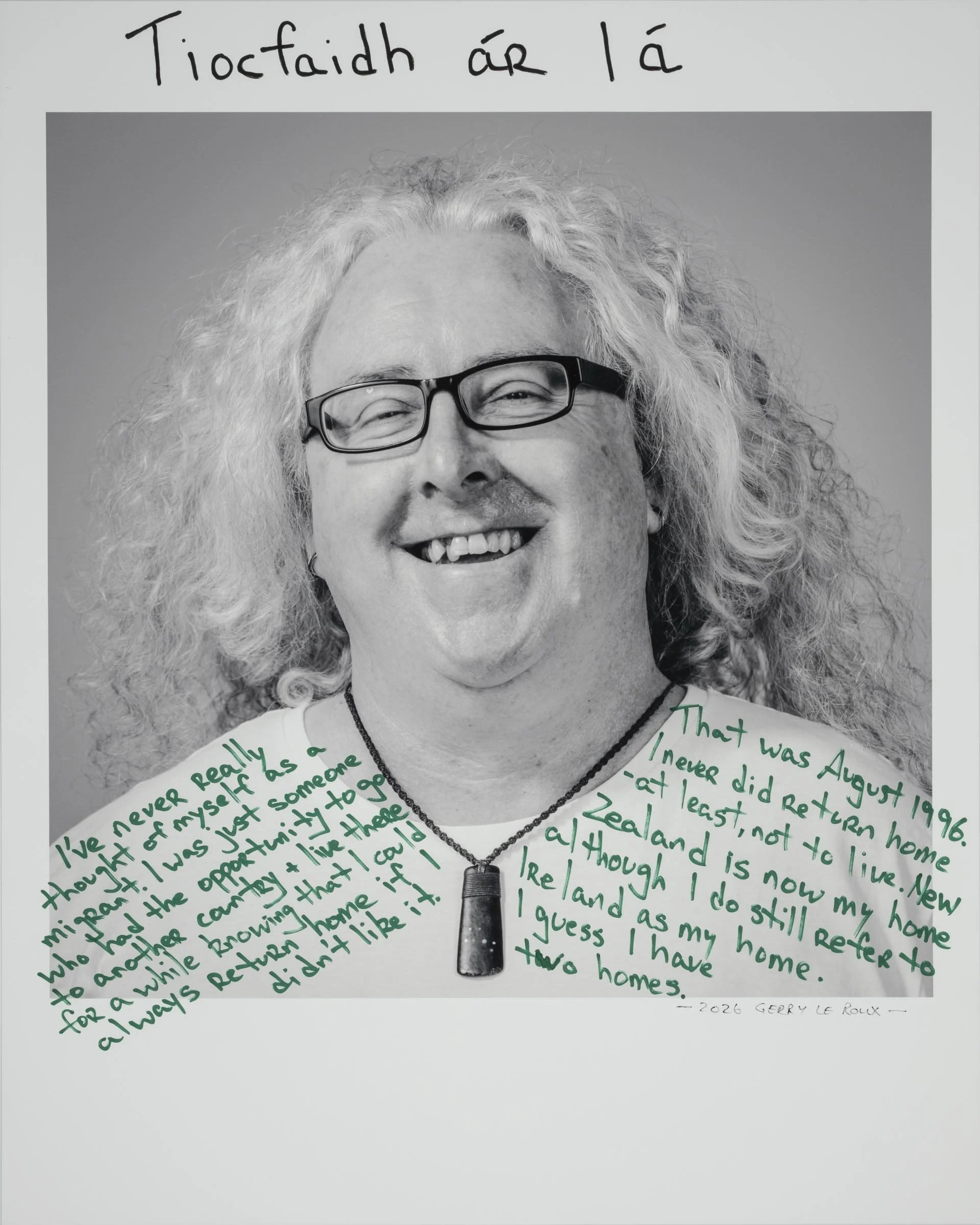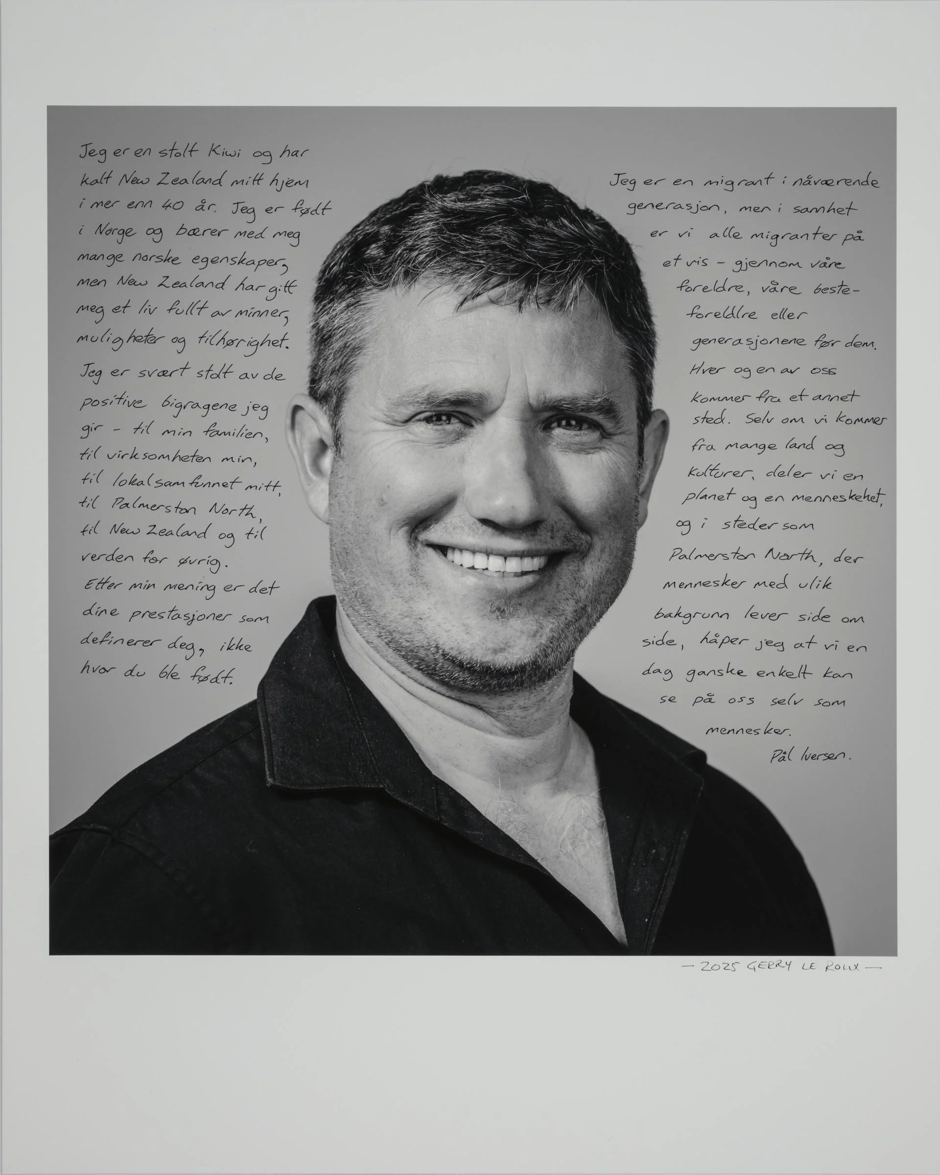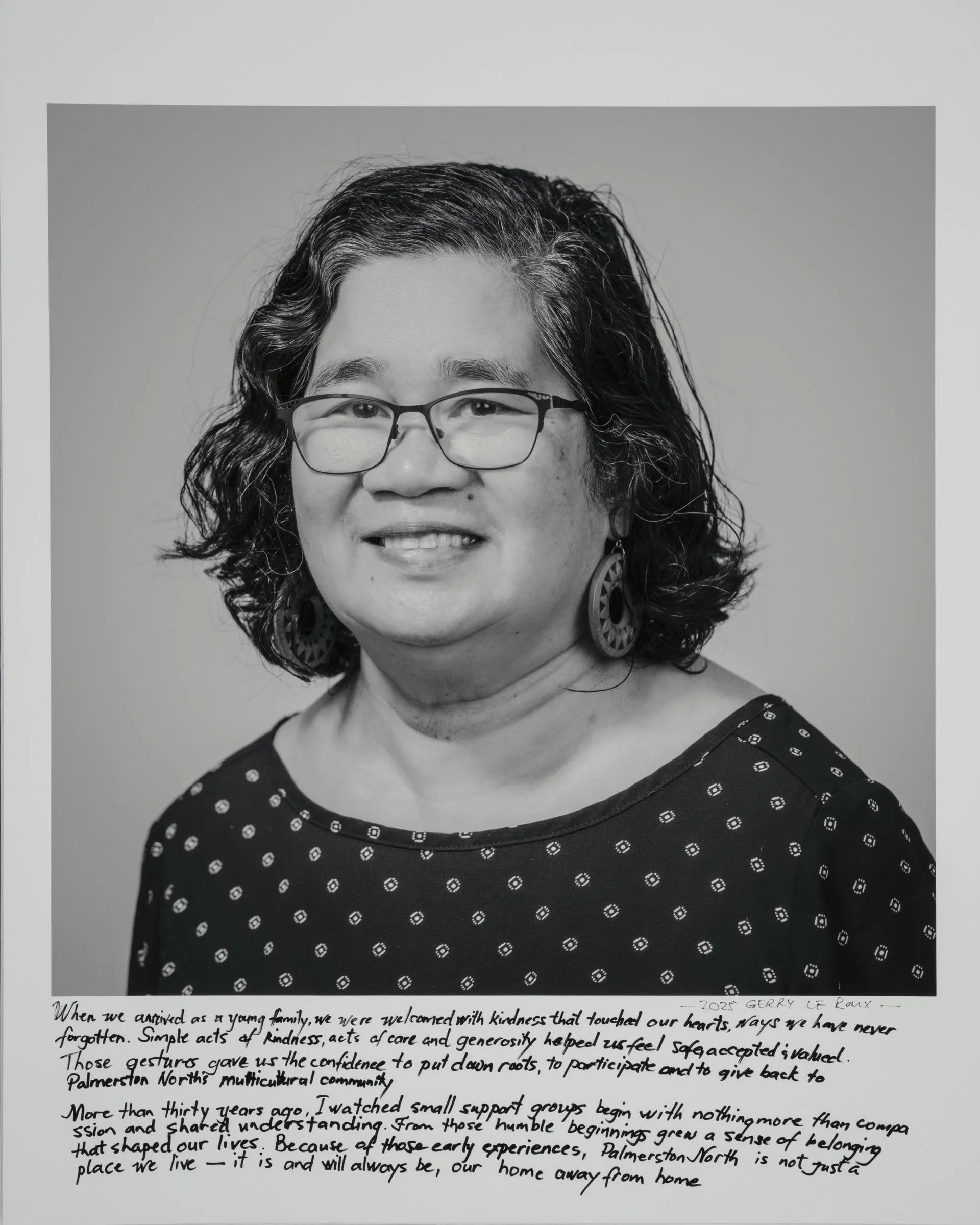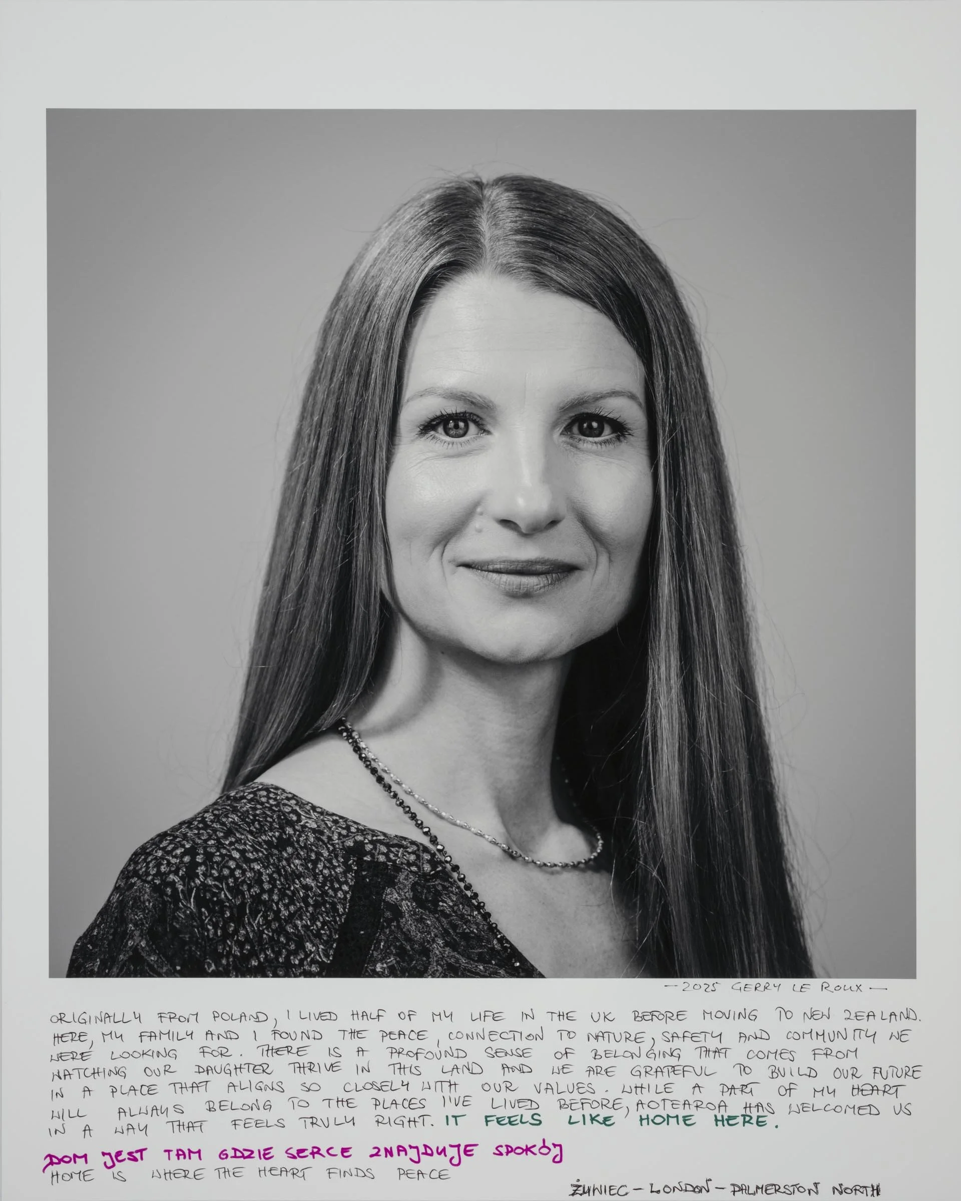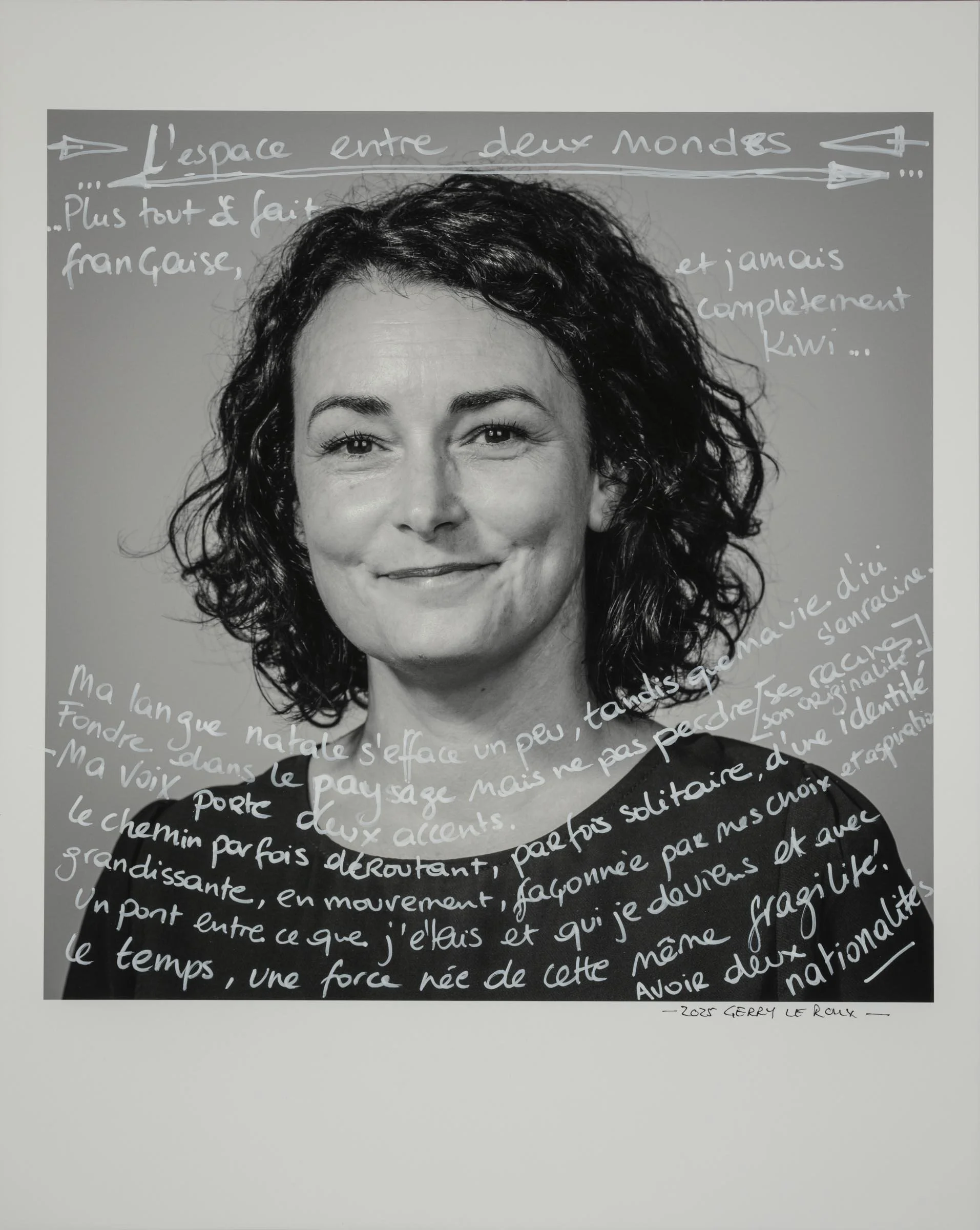 Being a part of the project involves having your head-and-shoulder portrait taken and then writing a short reflection about being a migrant, directly onto the photographic print. Your handwritten write-up can be in your native language or in English.