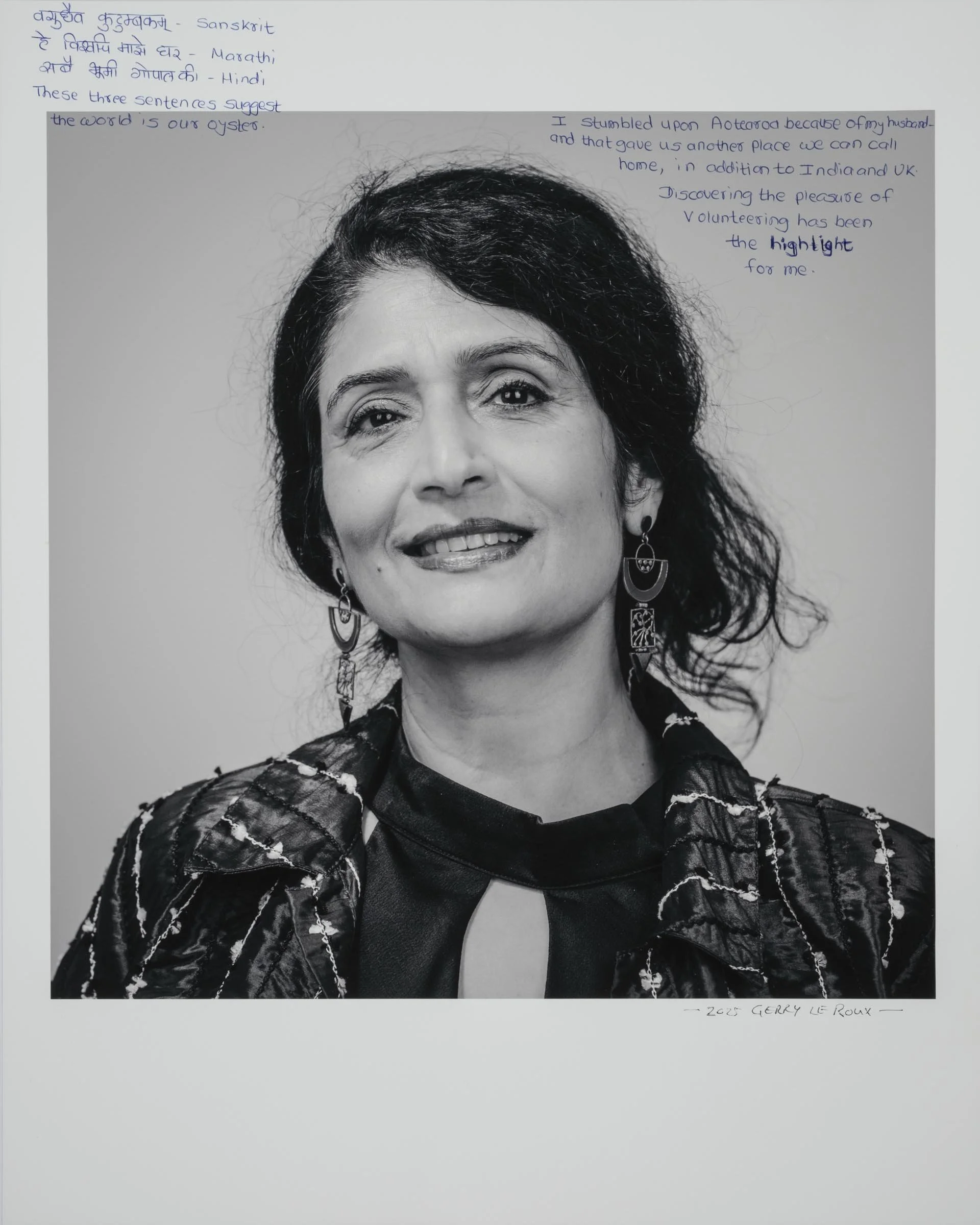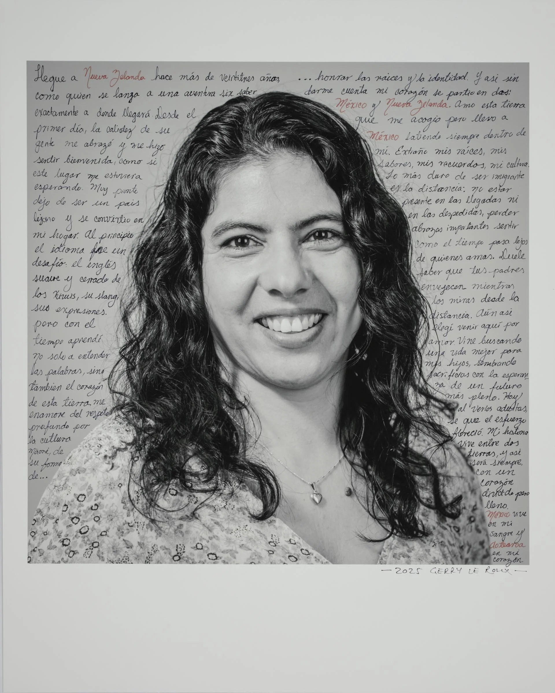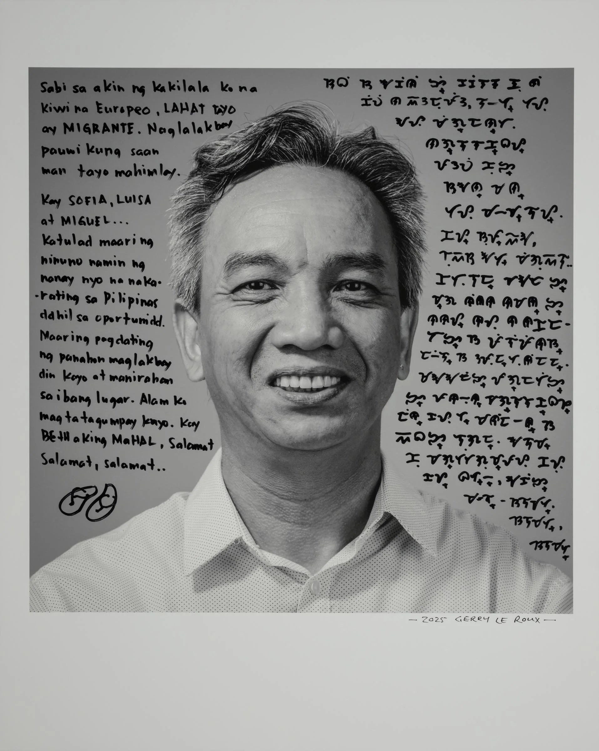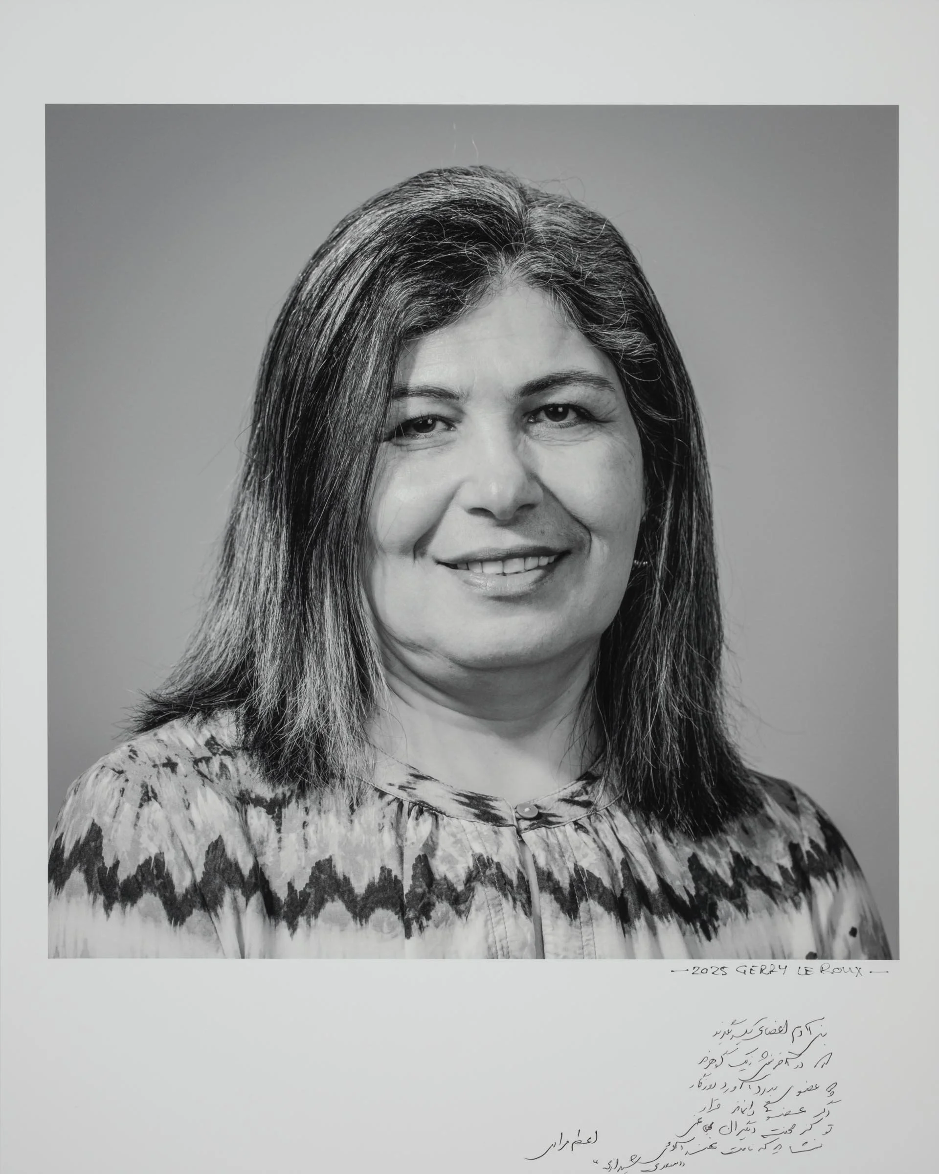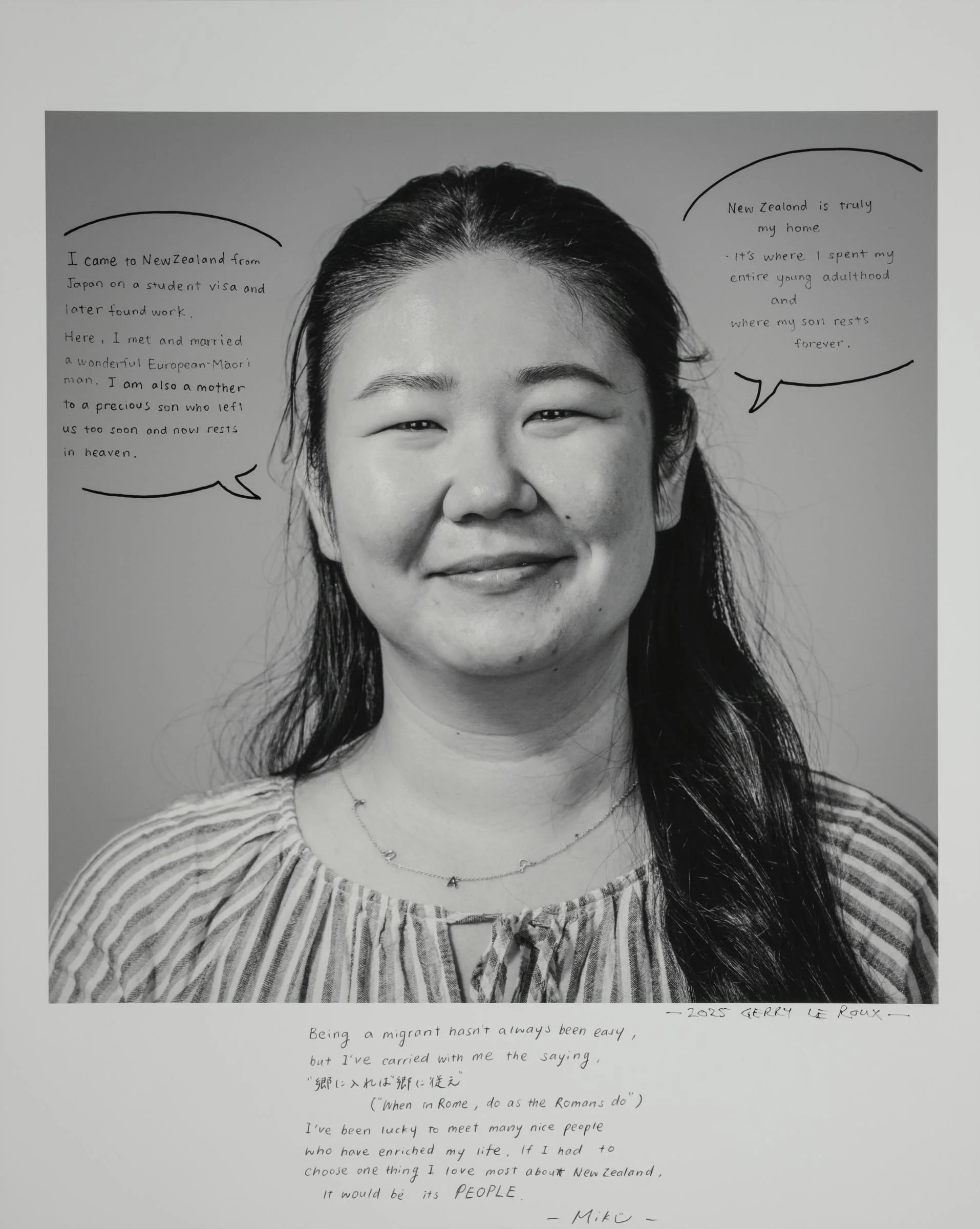 Being a part of the project involves having your head-and-shoulder portrait taken and then writing a short reflection about being a migrant, directly onto the photographic print. Your handwritten write-up can be in your native language or in English.
